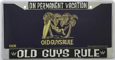 OLD GUYS RULE LICENSE PLATE FRAMES, PLATES AND KOOZIE'S